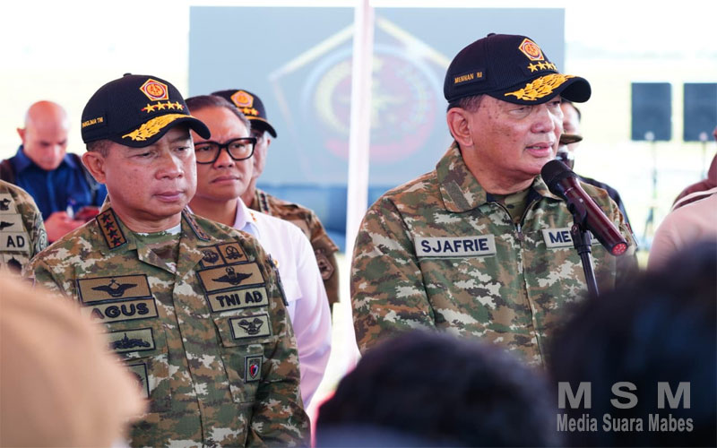 MediaSuaraMabes, Jakarta – Panglima TNI Jenderal TNI Agus Subiyanto mendampingi Menteri Pertahanan RI Sjafrie Sjamsoeddin bersama Jaksa Agung ST Burhanuddin, Kepala BPKP Muhammad Yusuf beserta pejabat terkait, menyaksikan secara langsung pelaksanaan Latihan Komando Gabungan (Kogab) TNI yang terintegrasi Tahun 2025 di kawasan Bandara PT IMIP, Morowali, Sulawesi Tengah, Kamis (20/11/2025).