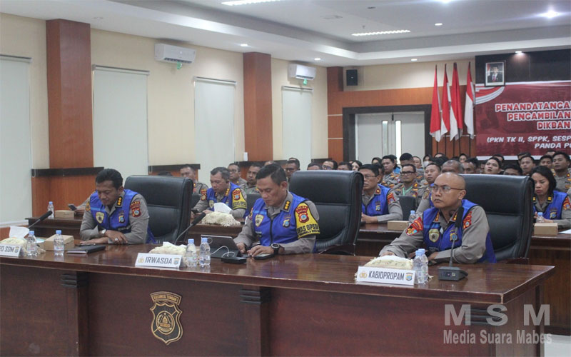 Pelaksanaan pengambilan sumpah dan penanda tanganan Pakta Integritas dilaksanakan di Rupatama Polda Sulteng dengan mengikuti secara zoom meeting dari Mabes Polri dipimpin Karo Watpers SSDM Polri Brigjen Pol. Anwar, SIK, M.Si, Senin (26/2/2024)