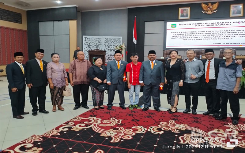 MajalahPerwira, Singkawang Kalimantan Barat – Dua orang Pengganti Antar Waktu (PAW) Anggota DPRD Kota Singkawang Sisa Masa Bhakti 2019-2024 resmi dilantik. Pelantikan dilaksanakan langsung Ketua DPRD Kota Singkawang, Sujianto yang disaksikan langsung Pejabat Wali kota Singkawang, Drs. H. Sumastro, M.Si., dalam Sidang Paripurna Istimewa di Balairung Ruang Utama Gedung Kantor Walikota Singkawang, Senin (11/Desember/2023). Adapun dua orang yang dilantik yakni Suleman dan Suparlin dari Fraksi Partai Hanura.