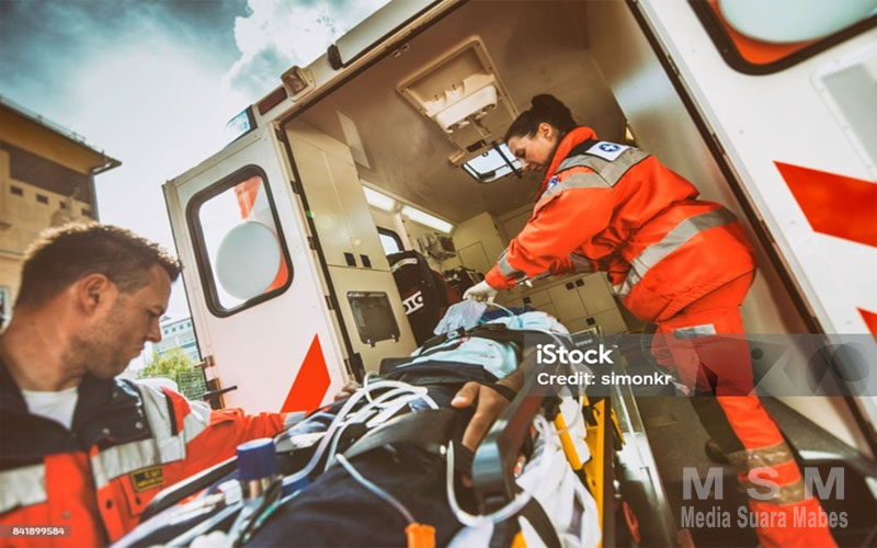 Di mobil ambulans, tenaga medis akan terus memantau kondisi dan tanda-tanda vital dari pasien, seperti pernapasan dan tekanan darah agar tetap stabil selama di perjalanan menuju rumah sakit.