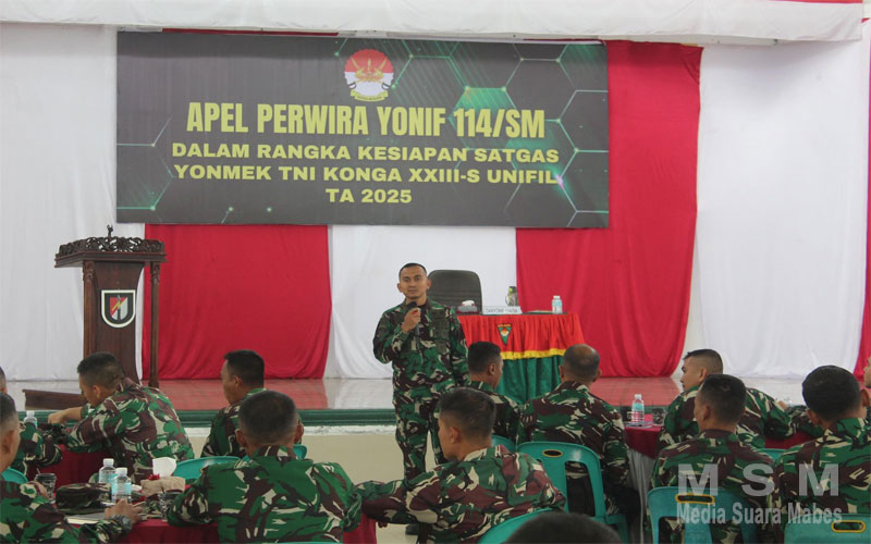 Komandan Yonif 114/Satria Musara, Mayor Inf Fahrul Yuza, S.H., M.I.P. Memimpin langsung apel tersebut dengan menekankan pentingnya Kepemimpinan, profesionalisme, disiplin, dan soliditas dalam setiap tahapan persiapan. “Pemimpin yang baik adalah diciptakan bukanlah dilahirkan secara natural tetapi dikembangkan melalui suatu proses panjang yang tidak pernah berhenti dari pembelajaran sendiri,” tegasnya.