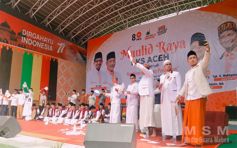 Maulid Raya PKS Aceh dimeriahkan oleh Tim Hadrah Baitul Qur’an, Tim Dikee Cakra Donya, Qari Fudhail Zubairy, Juara 1 MTQ Aceh 2023, penceramah Tgk. Junaidi Ilyas serta dipandu oleh mc bang prak.