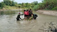 Jembatan Terputus Satgas Yonif 122/TS Merakit Perahu Bambu Uuntuk Warga Kampung Mosso, Di Perbatasan Papua
