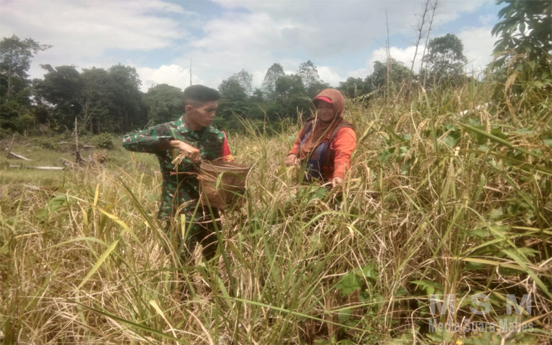 Wujud dukungan TNI khususnya prajurit kewilayahan yaitu Babinsa dalam mendukung ketahanan pangan, dengan Semangat ikut serta terjun langsung ke sawah bantu para petani desa binaannya saat memanen padi, inilah yang dilakukan oleh Babinsa kepada para petani warga desa binaannya.