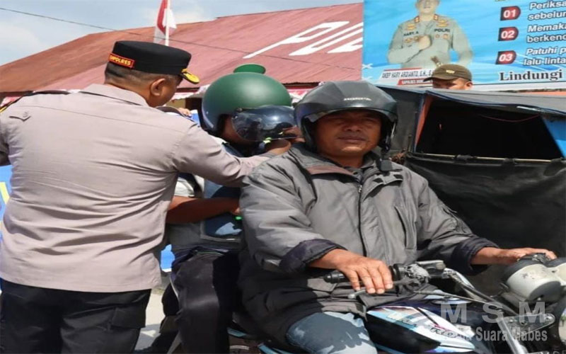” Pelanggar lalu lintas khususnya pengendara tidak memakai helm yang membahayakan keselamatan akan kita berikan edukasi bahwasannya tindakan yang bersangkutan sangat mengganggu ketertiban Berlalu lintas di jalan raya maupun keselamatan pribadi , sehingga pengendara yang tidak memakai helm yang bersangkutan kita berikan helm secaea gratis guna memberikan kesadaran terhadap pelanggar dan memberikan edukasi memasang helm dengan benar”. Ucap AKBP Hary.