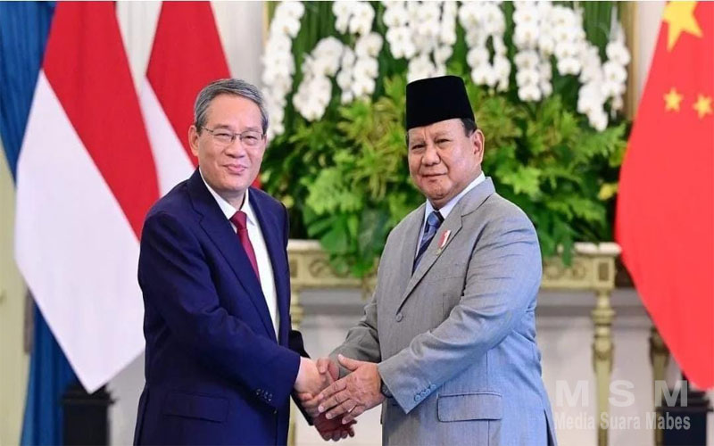 MediaSuaraMabes, Jakarta – Presiden RI Prabowo Subianto menerima kunjungan Perdana Menteri (PM) China Li Qiang dan para delegasi di Istana Merdeka, Jakarta, Minggu (25/5). Dalam pertemuan itu, keduanya membahas berbagai kerja sama termasuk keamanan maritim guna menciptakan kawasan yang aman dan damai.