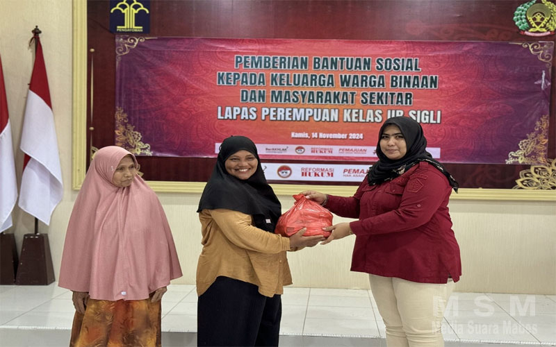 MajalahPerwira (MSM Network), Sigli – Lembaga Pemasyarakatan (Lapas) Perempuan Kelas IIB Sigli menyalurkan Bantuan Sosial kepada keluarga Warga Binaan dan masyarakat sekitar sebagai bagian dari upaya untuk mendukung pemulihan ekonomi masyarakat dan mempererat hubungan dengan lingkungan sekitar, sesuai dengan instruksi dari Menteri Imigrasi dan Pemasyarakatan, Kamis (14/11/2024).