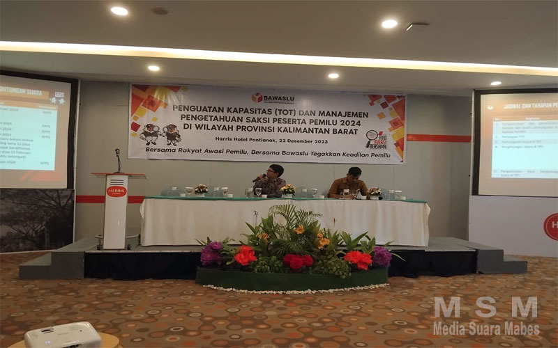 Faisal Riza Kordiv SDM dan Pendidikan dan Pelatihan mengatakan dalam kegiatan Penguatan kapasitas ( TOT) dan Manajemen pengetahuan saksi peserta pemilu 2024 di wilayah provinsi Kalimantan Barat, adalah Tugas dan mandat berdasarkan UU di selengarakan training of training(TOT) peserta pemilu untuk saksi – saksi, dalam penyelengaraan nya ada 3 level , yang pertama Provinsi , yang kedua level bawaslu Kabupaten/Kota mengundang Panwaslu Kecamatan dan Yang Ketiga Panwaslu Kecamatan mengundang Saksi – saksi Peserta pemilu yang ada di TPS.