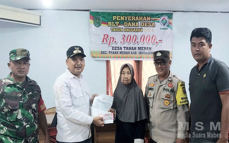 MajalahPerwira, Indragiri Hilir – Bhabinkamtibmas Desa Tanah Merah yang bertugas di Kecamatan Tanah Merah, turut aktif dalam menjalankan tugasnya dengan melaksanakan kegiatan pengamanan pada penyerahan dana Bantuan Langsung Tunai (BLT) sejumlah 300 ribu rupiah untuk tahun anggaran 2023. Kegiatan tersebut berlangsung di Kantor Desa Tanah Merah.