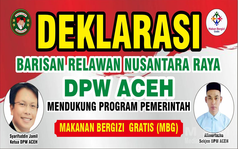 MajalahPerwira (MSM Network), Aceh – Barisan Relawan Nusantara Raya (BRNR) Aceh melakukan Deklarasi Serentak di 514 Kabupaten/Kota untuk mendukung Program Pemerintah Makan Bergizi Gratis(MBG) Se Indonesia.