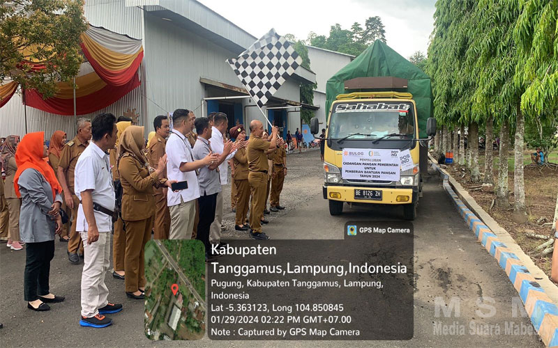 MajalahPerwira, Pugung – Penjabat Bupati Tanggamus Ir. Mulyadi Irsan, Menyalurkan Bantuan Cadangan Pangan Pemerintah Tahun 2024. Di Gudang Perum Bulog Pekon Rantau Tijang Kecamatan Pugung, Senin (29/01/2023)