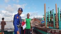 Menjelang HUT Kemerdekaan RI, Satpol Airud Polres Ketapang Bagikan Bendera Merah Putih kepada Warga Pesisir