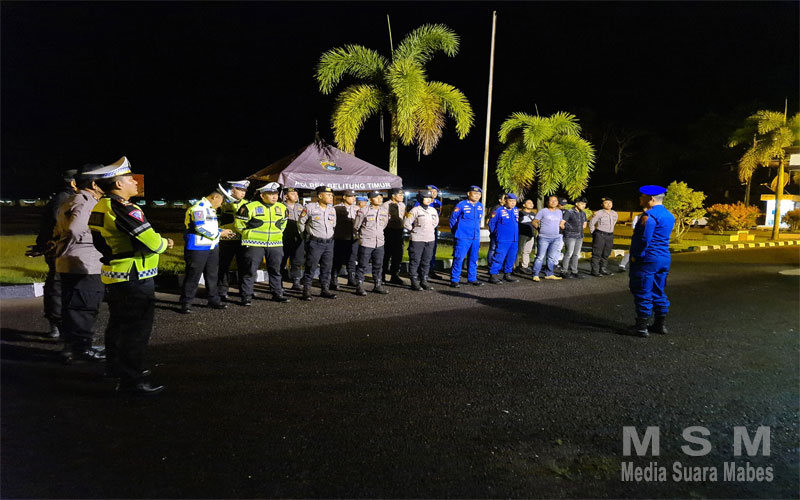 Personel Polres Belitung Timur melaksanakan pengaturan arus lalu lintas disekitar lokasi keramaian, patroli jalan kaki hingga melaksanakan pemeriksaan administrasi pengguna jalan, baik sepeda motor maupun mobil.