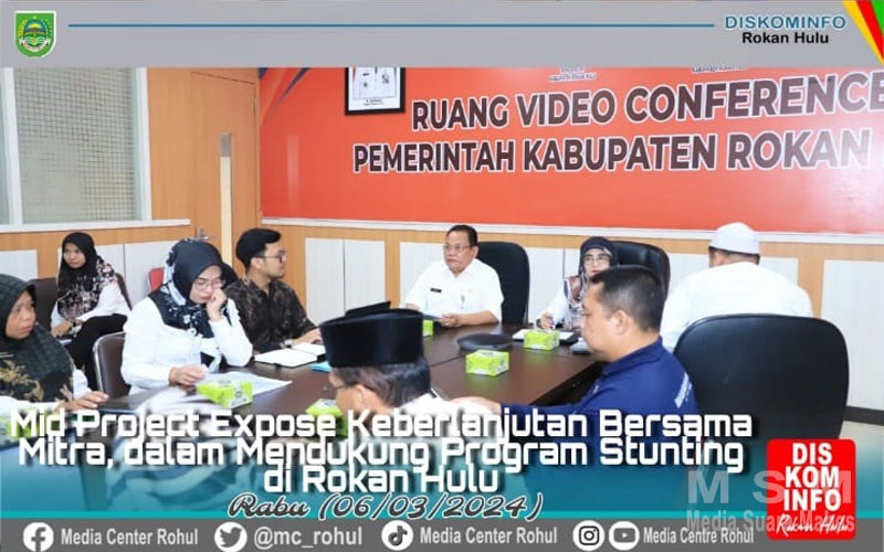 MajalahPerwira, Rohul – Dalam Upaya Percepatan Penurunan Stunting, Pemerintah Kabupaten (Pemkab) melalui Tim Percepatan Penurunan Stunting (TPPS) Rokan Hulu (Rohul) lakukan salah satu langkah Strategis yaitu Mid Project Expose atau kerja sama dengan mitra melalui untuk Pendampingan Teknis dan Advokasi secara Zoom Meting di Ruang Vidcon Diskominfo, Rabu (06/03/2024).