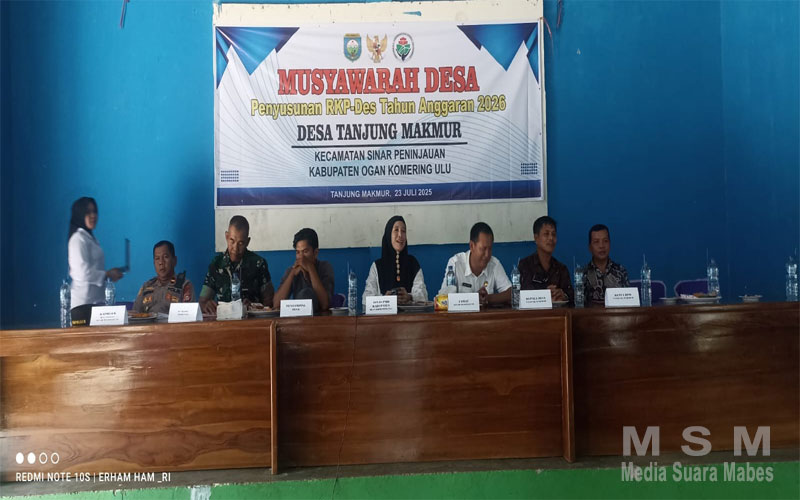 MediaSuaraMabes, Baturaja – Musyawarah Desa terkait Penyusunan Rencana Kerja Pemerintah Desa (RKPDes) Tahun Anggaran 2026 dan Daftar Usulan Rencana kerja Pemerintah Desa (DU-RKPDes) Tahun Anggaran 2026 Desa Tanjung makmur Kecamatan Sinar peninjauan OKU, Rabu 23/7/2025 di Aula Kantor Desa Tanjung makmur.