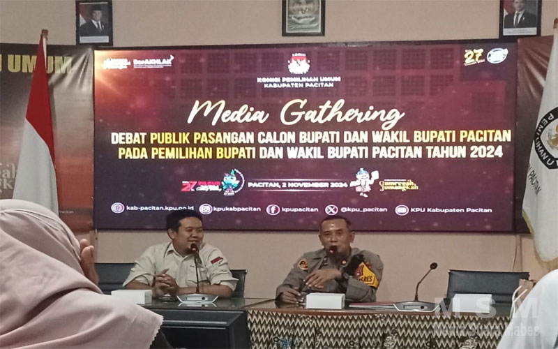MajalahPerwira (MSM Network), Pacitan – Debat Paslon Cabup dan Cawabup Ronny – Wahyu dan Aji – Gagarin akan digelar lagi pada Minggu 3 September 2024 di Gedung Gasibu di mulai pukul 19.30 WIB – Selesai. Media Gathering yang diadakan KPU hari ini Sabtu 2 September 2024 adalah dalam rangka memberikan informasi ke wartawan untuk disebar luaskan tentang pelaksanaan debat publik dan pengamanan pilkada.