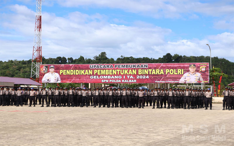 MajalahPerwira, Singkawang Kalbar – Wakapolda Kalbar Brigjen Pol Roma Hutajulu, S.I.K., M.Si., didampingi beberapa pejabat utama polda Kalbar dan perwakilan dari masing-masing forkopimda Kota Singkawang, membuka Pendidikan dan Pembentukan (Diktuk) Bintara Polri gelombang I Tahun Anggaran 2024 di Sekolah Polisi Negara (SPN) Polda Kalbar, Sagatani, Kota Singkawang, Selasa (13/2), diikuti sebanyak 209 siswa Bintara yang akan dididik selama lima bulan ke depan.