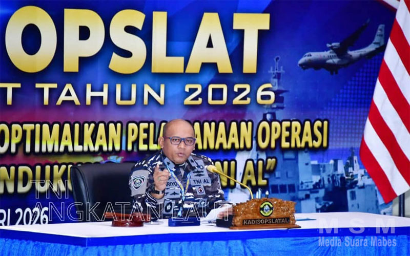 MediaSuaraMabes, Jakarta – Dinas Operasi dan Latihan Angkatan Laut (Disopslatal) secara resmi menggelar Rapat Kerja Teknis Operasi dan Latihan (Rakernis Opslat) Tahun Anggaran 2026. Kegiatan ini dibuka langsung oleh Kepala Disopslatal, Laksamana Pertama TNI Hariyo Poernomo, bertempat di Auditorium Denma Mabesal, Jakarta Timur, pada Jumat (20/02/2026).