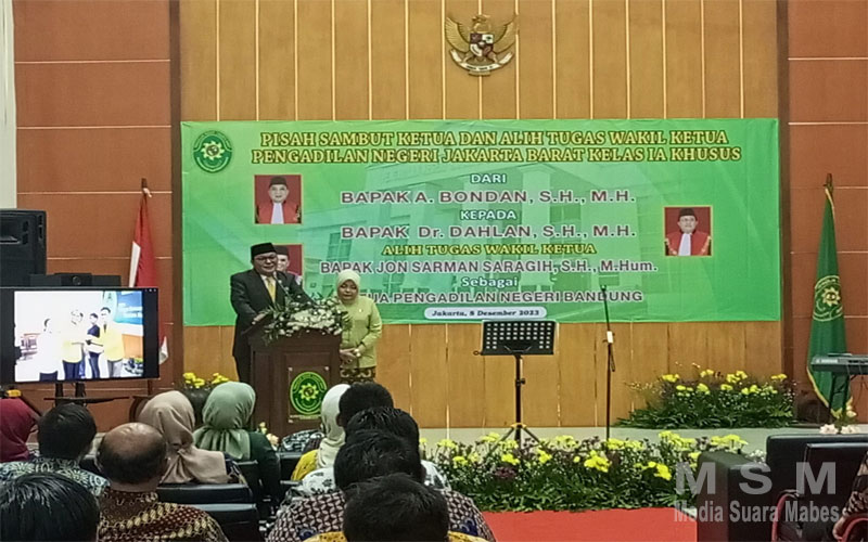 MajalahPerwira, Jakarta – Pengadilan Negeri (PN) Jakarta Barat menggelar Pisah Sambut Ketua dan Alih Tugas Wakil Ketua kelas IA Khusus dari Bpk. A. Bondan, S.H., M.H. kepada Bapak. Dr. Dahlan, S.H., M.H. serta Alih Tugas Wakil Ketua Bpk. Jon Sarman Saragih, S.H., M.Hum. sebagai Ketua PN Bandung, acara pisah sambut digelar di Aula PN Jakbar, Jl. Letjen S. Parman No.71, RT.10/RW.3, Slipi, Kecamatan. Palmerah, Jakarta Barat, Jumat (08/12/2023) siang.