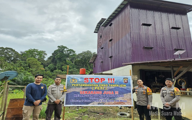 MajalahPerwira (Jaringan MSM), Ketapang – Polda Kalbar, Jajaran Polsek Sandai Polres Ketapang mendatangi lokasi pertambangan emas tanpa izin di lokasi Desa Riam Dadap dan Desa Beginci Darat Kecamatan Hulu Sungai Kabupaten Ketapang. Kedatangan tim Polsek Sandai ke lokasi tersebut untuk melakukan pengecekan dan memberikan himbauan larangan aktivitas pertambangan ilegal melalui pemasangan spanduk pada Rabu, (29/01/2025).
