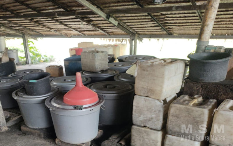 Di gudang ini juga terdapat beberapa tungku drum besi, yang digunakan untuk memasak Arak. Serta kayu bakar yang masih tersisa asap bekas pembakaran, di sertai adanya Aroma Alkohol di beberapa drum plastik yang berada di dalam gudang.