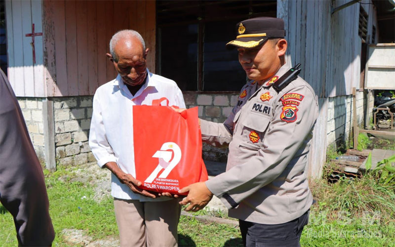 MediaSuaraMabes, Waropen – Dalam rangka memperingati Hari Bhayangkara Ke 79 Tahun 2025, Polres Waropen laksanakan anjangsana dan penyerahan tali asih ke para purnawirawan serta warakawuri Polri, Pondok Pesantren Ma’arif NU dan LKSA Agape, Kamis (26/06/2025).