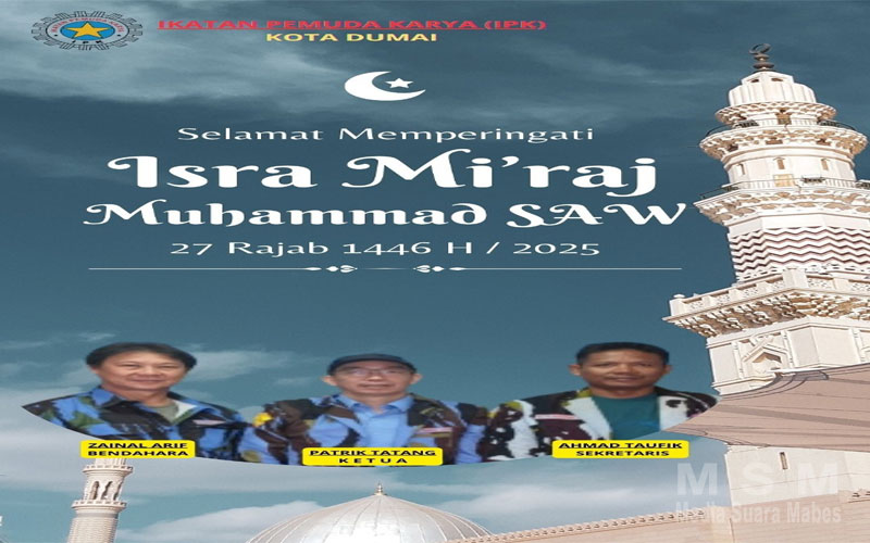 MajalahPerwira (Jaringan MSM), Dumai – Peringatan Isra’ Mi’raj Nabi Muhammad SAW 1446 H/2025 menjadi momentum bagi umat Islam untuk merenung dan meningkatkan kualitas diri. Di Kota Dumai, momen sakral ini juga menjadi pemantik semangat bagi Ikatan Pemuda Karya (IPK) untuk terus berkontribusi aktif dalam membangun generasi muda yang berkualitas dan berakhlak mulia.