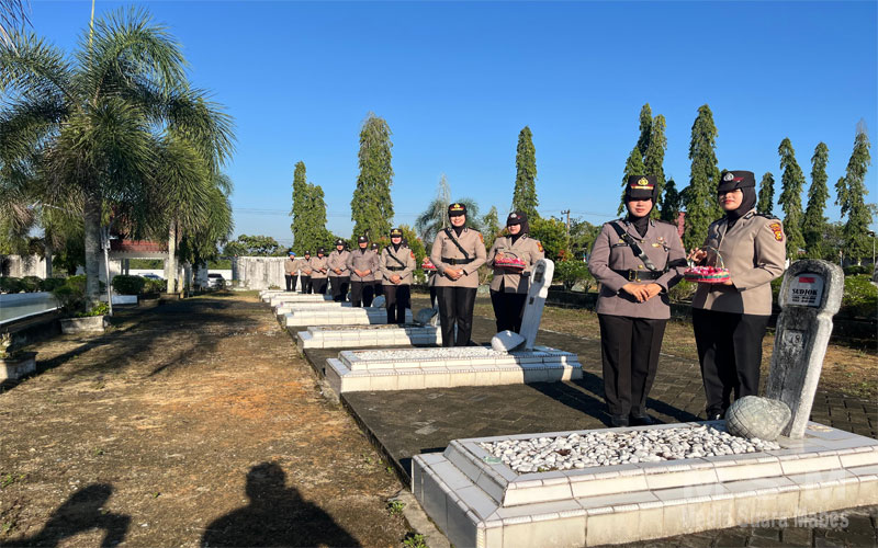 Dengan khidmat, para Polwan menaburkan bunga dan memanjatkan doa di pusara para pahlawan. Suasana haru dan khidmat menyelimuti TMP Kusuma Eka Bhakti Bangkinang.