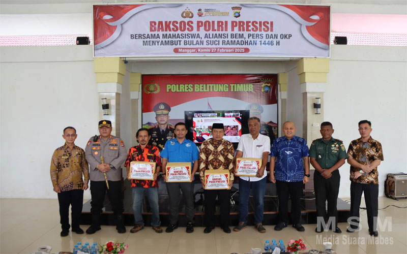 MajalahPerwira (Jaringan MSM), Babel – Polres Belitung Timur menggelar kegiatan Bakti Sosial atau Baksos Polri Presisi dengan membagikan 50 paket sembako untuk masyarakat khususnya rekan-rekan dari organisasi kepemudaan, mahasiswa dan insan pers atau media di Kabupaten Belitung Timur di Joglo Patriatama Polres Belitung Timur, Kamis (27/02/2025).