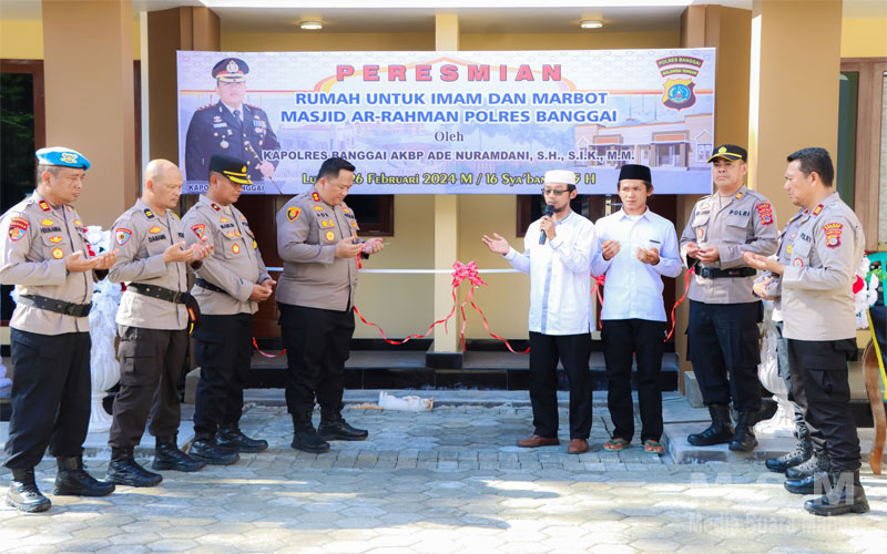 MajalahPerwira, Banggai – Kapolres Banggai AKBP Ade Nuramdani, meresmikan pembangunan rumah imam dan marbot Masjid Ar-Rahman Mapolres Banggai, Senin (26/2/24) pagi