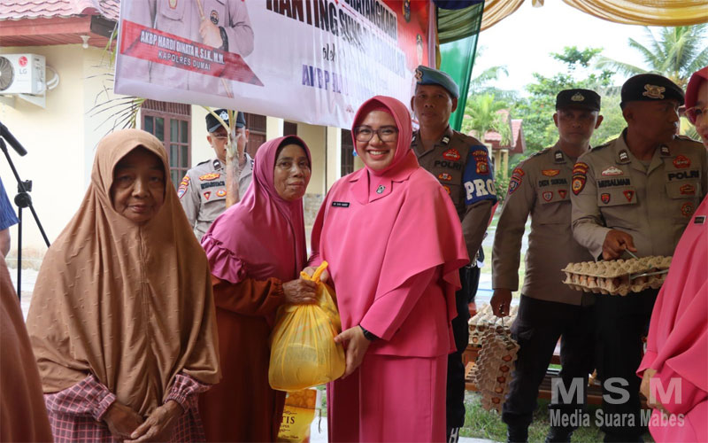 Dalam acara tersebut, Kapolres Dumai juga menyerahkan bantuan sosial berupa sembako kepada sepuluh warga masyarakat yang kurang mampu. Penyerahan bantuan dilakukan langsung oleh Kapolres dan didampingi Kapolsek Sungai Sembilan.
