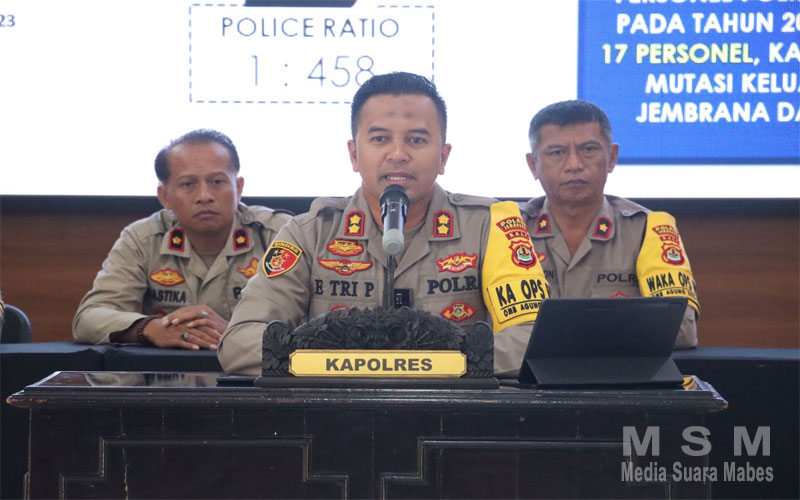 MajalahPerwira, Jembrana Bali – Dalam Press Conference Akhir Tahun 2023 di Aula Mapolres (29/12), Kapolres Jembrana AKBP Endang Tri Purwanto, S.I.K., M.Si. memaparkan berbagai aspek terkait keberhasilan dan perkembangan Polres Jembrana selama tahun 2023.