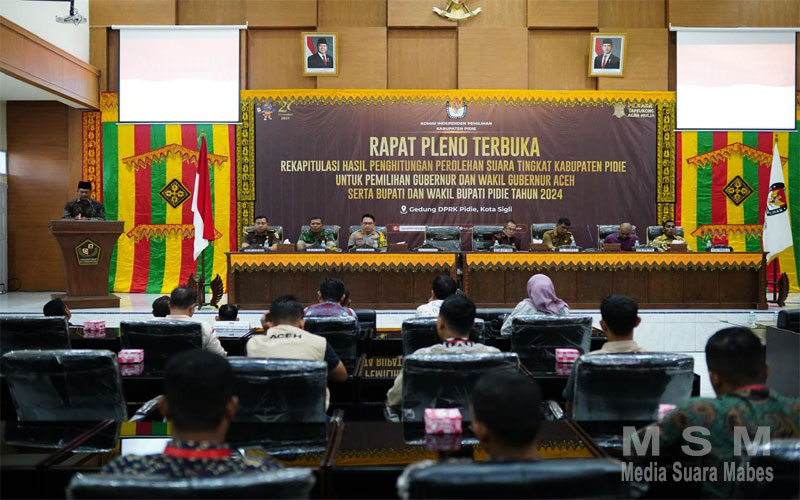 MajalahPerwira (MSM Network), Sigli – Kapolres Pidie AKBP Jaka Mulyana, SIK, MIK menghadiri rapat pleno terbuka rekapitulasi hasil penghitungan perolehan suara tingkat kabupaten Pidie pada Pilkada tahun 2024, yang dilaksanakan oleh Komisi Independen Pemilihan (KIP) Kabupaten Pidie.
