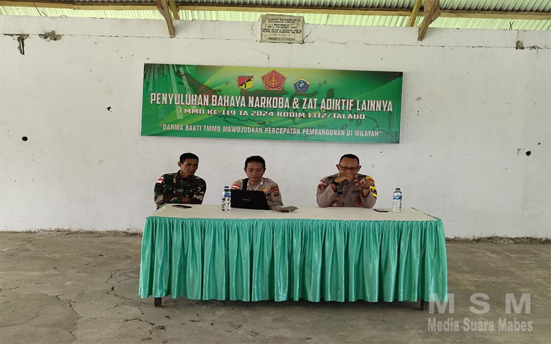 MajalahPerwira, Talaud – Penyuluhan Bahaya Narkotika Dan Zat adektif dalam rangka TMMD yang Ke-199  TA 2024 kodim 1312 Talaud bertempat di Aula kantor camat Essang kecamatan Essang Kabupaten Kepl. Talaud,Kamis 14/3/2024 Pagi.
