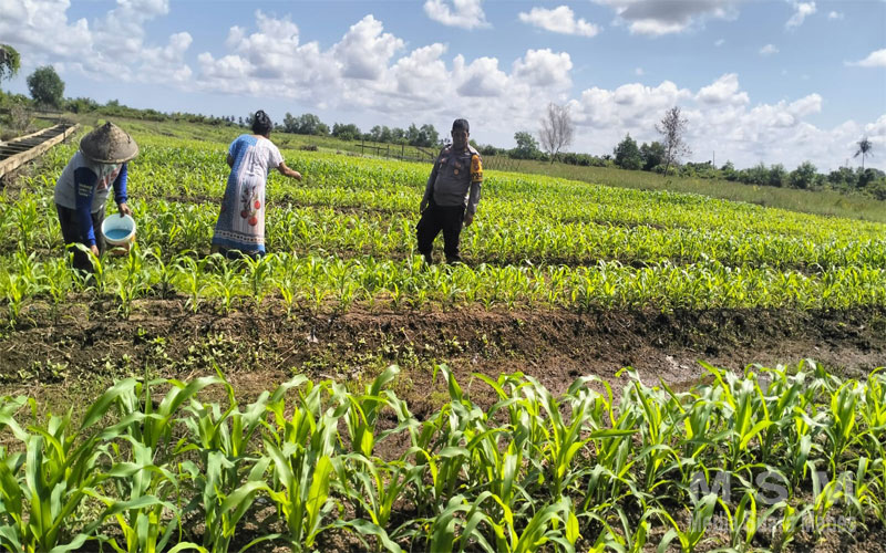 MediaSuaraMabes, Ketapang — Kapolsek Matan Hilir Selatan, AKP Helwani, bersama personel Bintara Penggerak, melakukan peninjauan langsung terhadap perkembangan tanaman jagung hibrida milik Kelompok Tani (Poktan) Gaya Baru yang berlokasi di Desa Sungai Pelang, Kecamatan Matan Hilir Selatan, Kabupaten Ketapang.