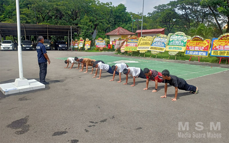 Setelah menginap semalam di Mapolsek Cikarang Pusat, para pelajar ini diberikan pembinaan, mulai dari baris-berbaris, menyanyikan lagu Indonesia Raya dan pembinaan fisik (push up).