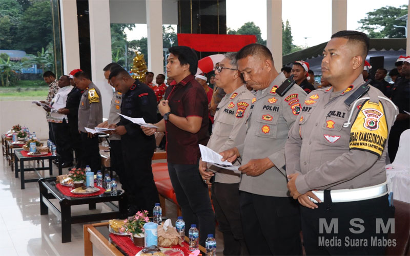 Natal mengangkat tema “Dengan semangat kerendahan hati menyambut kelahiran kristus melalui peran Polri Presisi, guna Berintegrasi, Mengasihi dan melayani guna mewujudkan Pemilu Damai Menuju Indonesia Maju” berlangsung dengan hikmat.