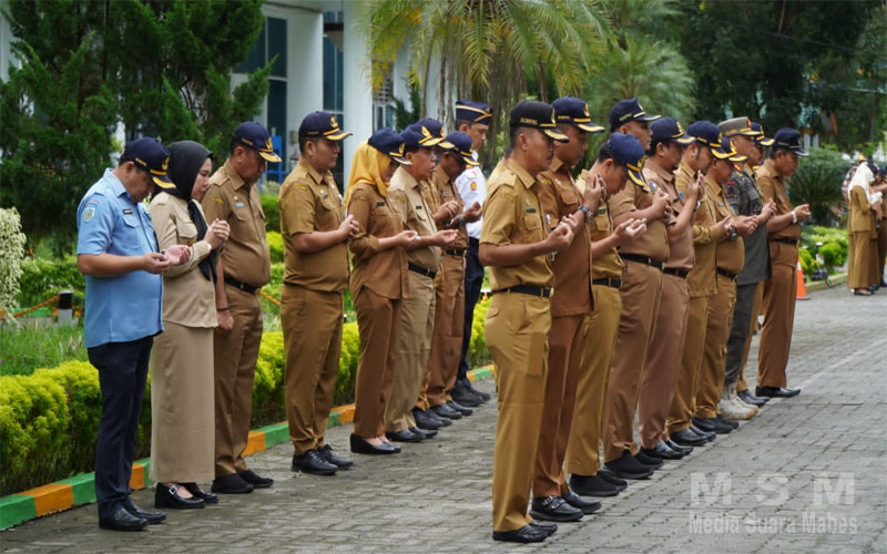 MajalahPerwira, Langkat – Plt Bupati Langkat H. Syah Afandin SH melalui Asisten Administrasi Umum Musti, SE, M.Si bertindak pembina Apel Gabungan Aparatur Sipil Negara (ASN) lingkungan Pemkab Langkat, di halaman Kantor Bupati Langkat, Senin (08/01/2024).