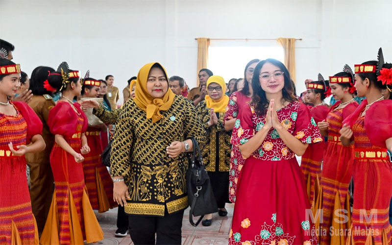 Kehadiran Tim Supervisi Provinsi Sumut yang diketuai Ny Yuni Rajali disambut dengan tari-tarian dari Sanggar Seni Maduma.