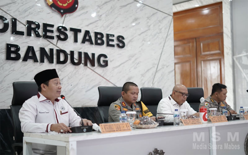 Kapolda Jawa Barat, Irjen Pol. Dr. Akhmad Wiyagus, S.I.K., M.Si., M.M., dalam sambutan tertulis yang dibacakan Irwasda menyambut baik misi kunjungan kerja Tim Kompolnas dalam pelaksanaan pengawasan kesiapan Ops Mantap Brata 2023-2024 di wilayah hukum Polda Jabar guna mewujudkan manajemen operasi yang baik dan lancar sehingga situasi kamtibmas yang kondusif bisa tercapai.