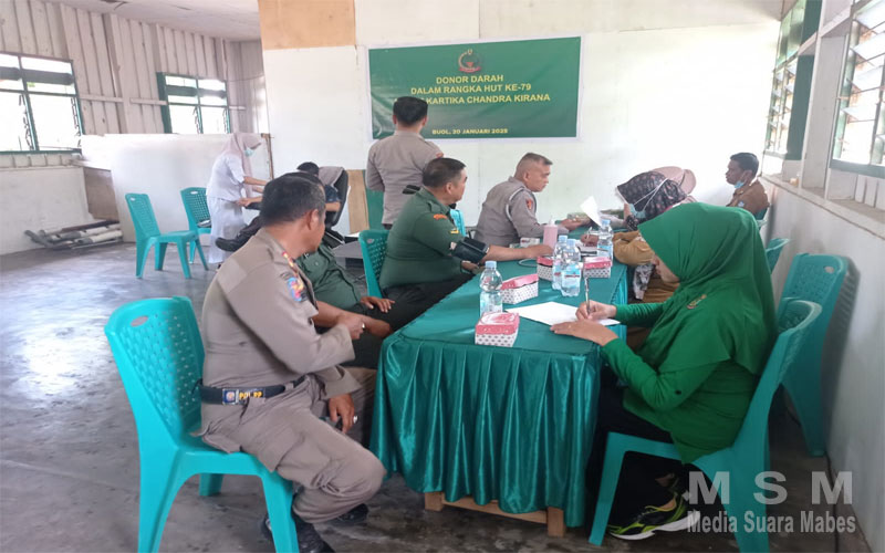 MajalahPerwira (Jaringan MSM), Buol – Koramil 1305-05 Biau Gelar Kegiatan Donor Darah dalam Rangka HUT Ke – 79 Persit Kartika Chandra Kirana, pada kegiatan tersebut bertempat di Aula Koramil 1305-05 Biau, Jln. AB Timumun Kelurahan Kali Kecamatan Biau Kabupaten Buol, Senin (20/01/25)