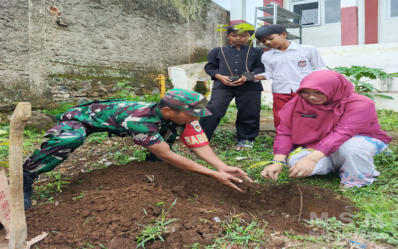 Koramil Parungkuda Bekerjasama Dengan SD Negeri Kerenceng Dalam Penghijauan Taman Sekolah