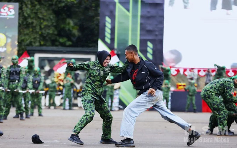 Di hadapan Panglima TNI, para Srikandi Kowad tampil gagah berani mempersembahkan demonstrasi pencak silat militer yang memukau. Gerakan cepat dan terukur bukan sekadar seni bela diri, melainkan simbol disiplin, semangat juang, serta profesionalisme prajurit wanita Angkatan Darat. Setiap jurus yang dilancarkan mengundang decak kagum, menegaskan ketangguhan dan dedikasi mereka yang sejajar dengan prajurit pria.