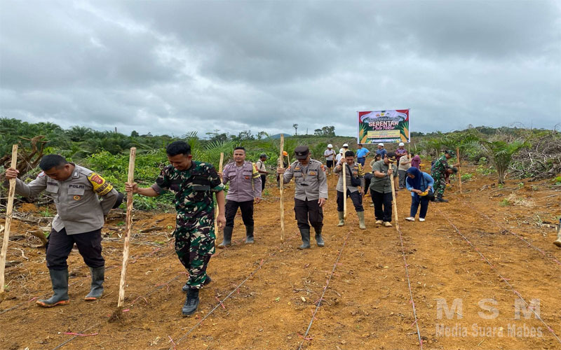 MajalahPerwira (Jaringan MSM), Ketapang Kalbar – Polsek Sandai Polres Ketapang melakukan langkah positif dalam mendukung ketahanan pangan dan pemberdayaan masyarakat dengan melaksanakan penanaman jagung secara tumpang sari di lahan milik PT. Citra Sawit Cemerlang (CSC) yang terletak di Kecamatan Sandai, Kabupaten Ketapang (01/03/2025).