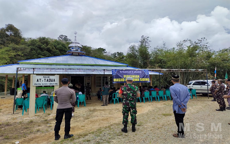 Kapolres Bengkayang Polda Kalbar, AKBP Teguh Nugroho, S.H., S.I.K., M.I.K., meresmikan masjid ini melalui perwakilannya, Kapolsek Siding IPTU Oman Kurnianto.