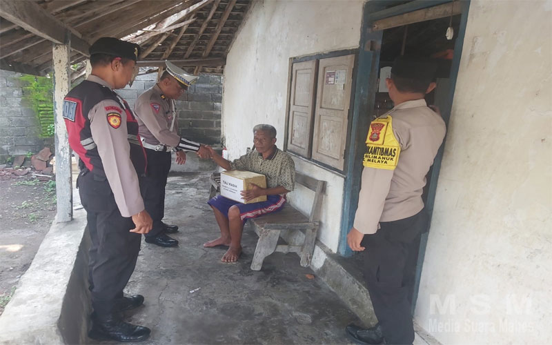Kapolsek Kawasan Pelabuhan Gilimanuk yang diwakili oleh Panit Lantas, IPTU I Gede Sedana, memberikan bantuan sembako kepada seorang warga yang mengalami sakit (stroke) atas nama Muhamad Iksan di Lingkungan Penginuman, Kelurahan Gilimanuk.