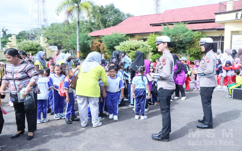 “ Edukasi ini merupakan wujud nyata peranan Polri dalam mengenalkan peraturan dan rambu rambu lalu lintas seluruh lapisan masyarakat, dan pada edisi kali ini yang menjadi sasaran sosialisasi adalah generasi muda bangsa yaitu anak anak usia dini ” Ujar Angga.
