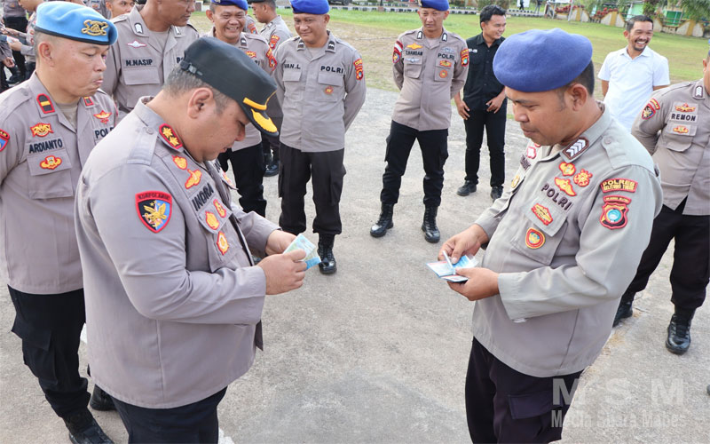 Kapolres Belitung Timur mengecek kepatuhan perorangan personel meliputi, SIM, STNK, dan Kartu Identitas.