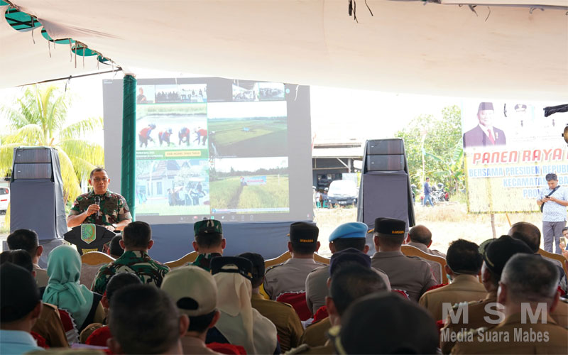 MediaSuaraMabes, Sambas – Pangdam XII/Tpr Mayjen TNI Jamallulael, S.Sos., M.Si., menghadiri kegiatan panen raya padi secara serentak di 14 Provinsi yang digelar secara virtual bersama Presiden RI Prabowo Subianto, bertempat di area persawahan Dusun Lestari, Desa Mensere, Kec. Tebas, Kab Sambas, Senin (07/4/25).