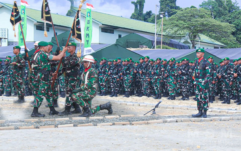 MediaSuaraMabes, Kaimana – Pangdam XVIII/Kasuari Mayjen TNI Christian Kurnianto Tehuteru memimpin Upacara Penyerahan Tunggul Yonif Teritorial Pembangunan (TP) kepada para Danyonif TP di Yonif TP 864/NN, Kabupaten Kaimana, Papua Barat, pada Kamis (15/1/2026).